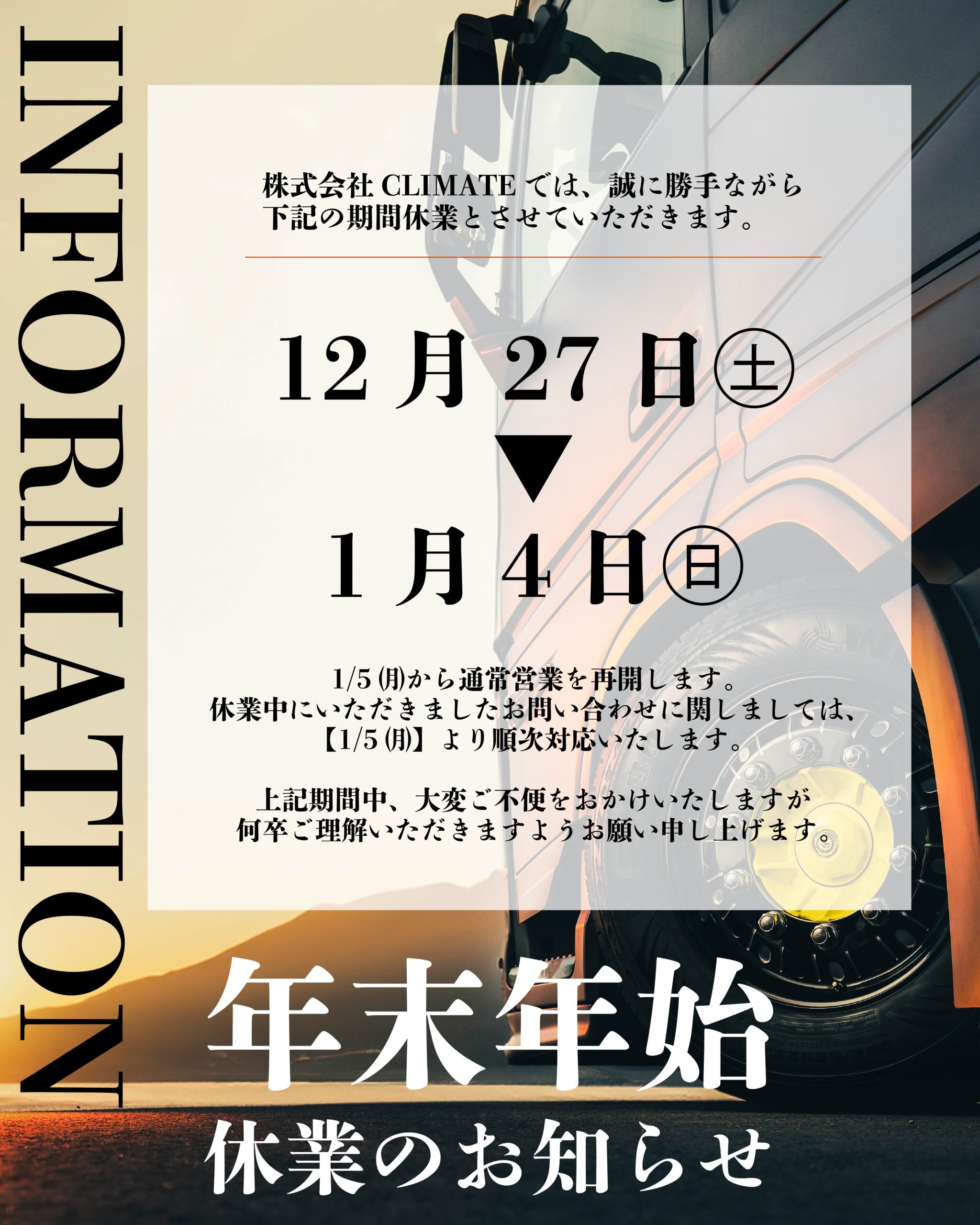 2025-2026 年末年始休業のお知らせ